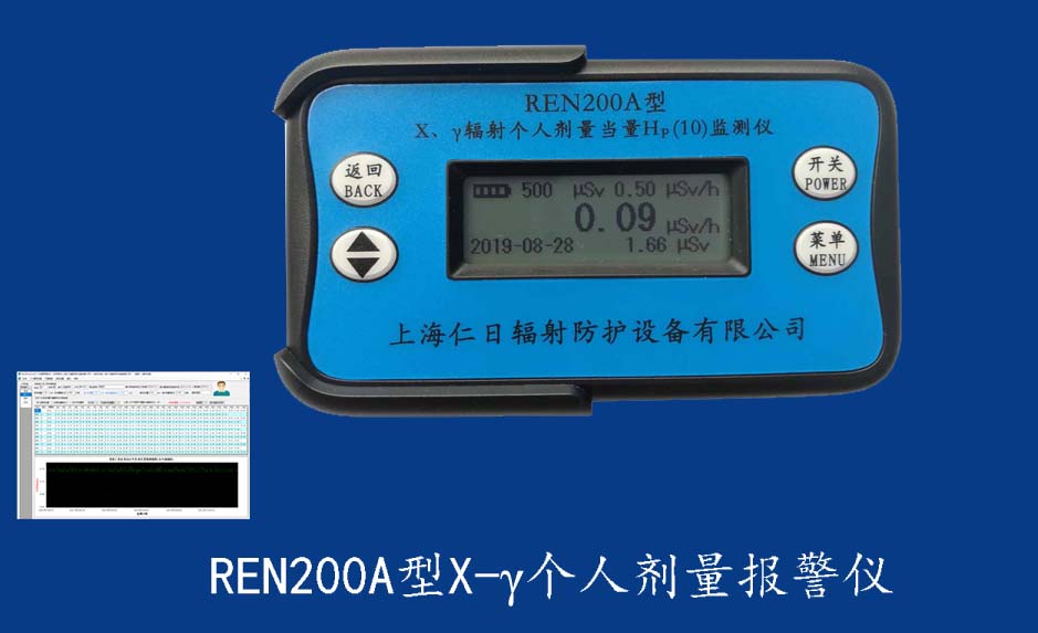 REN200型X、γ個人劑量報警儀(又叫X、γ輻射個人劑量當量HP(10)監(jiān)測儀)內置高靈敏度蓋格計數(shù)管為探測器,主要用來監(jiān)測各種放射性工作場所的X、γ以及硬β射線的輻射,具有響應快,測量范圍寬的特點。能顯示工作場所的劑量當量率和累積劑量,更換電池時,日期及累積數(shù)據(jù)能永久保存。可選配RenRiPersonal個人劑量管理軟件,該軟件可存儲多個人的歷史數(shù)據(jù),能記錄日累積、月累積、年累積、輻照時長、計算平均劑量率、扣除或不扣除本底輻射,且以文字和圖譜的方式展現(xiàn)數(shù)據(jù)。廣泛應用于核電站、加速器、鋼鐵、化工、同位素應用、醫(yī)院、工業(yè)X、γ無損探傷、放射醫(yī)療、鈷源治療、γ輻照、放射性實驗室、核設施周圍環(huán)境監(jiān)測